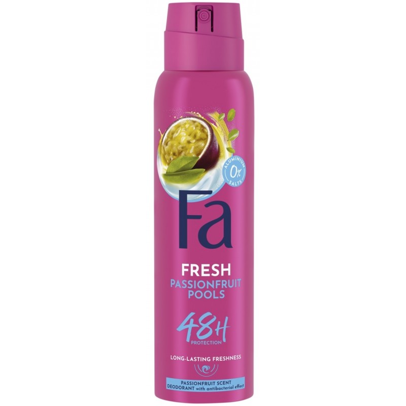 Fa Passionfruit dezodorant o zapachu marakui i wody kokosowej. Nie pozostawia plam i chroni przed nieprzyjemnym zapachem do 48 godzin. Przyjazna dla skóry formuła bez soli aluminium.