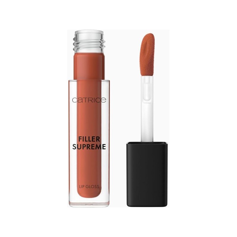 Pozwól swoim ustom zabłysnąć z błyszczykiem Catrice Filler Supreme Lip Gloss 100 Cinnamon Glazed. Błyszczyk w ciepłym odcieniu brązu sprawia, że usta wydają się pełniejsze, otulając je intensywnym, lśniącym blaskiem. Wzbogacona peptydami i kwasem hialuronowym formuła utrzymuje nawilżenie nawet do 12 godzin, pozostawiając usta gładkie, miękkie i widocznie pełniejsze – bez uczucia mrowienia. Drobne linie zostają wygładzone, zapewniając efekt naturalnie pełniejszych ust. Nieklejąca się, delikatna formuła zapewnia wyjątkowy komfort, a subtelny zapach kokosa i wanilii zamienia każdą aplikację w zmysłową przyjemność. Dzięki specjalnie zaprojektowanemu aplikatorowi, błyszczyk rozprowadza się równomiernie i zapewnia odpowiednią dawkę blasku już za jednym pociągnięciem.
