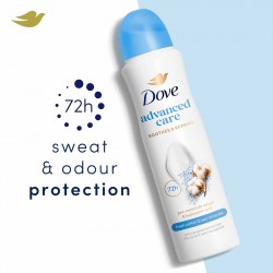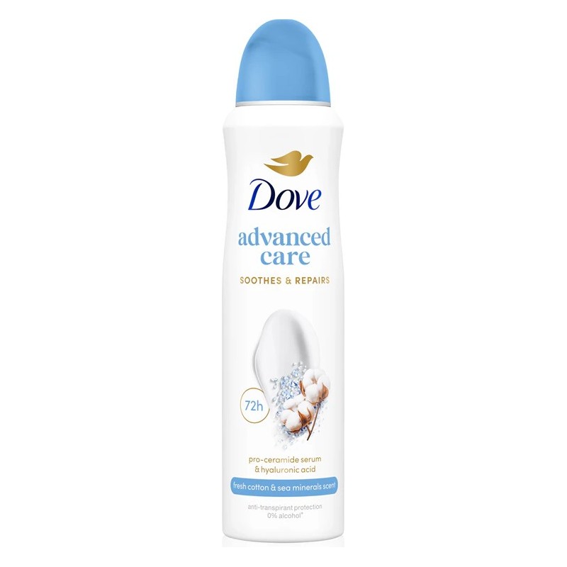 Dezodorant spray Dove Advanced Care Fresh Cotton and Sea Minerals łączy w sobie wysoką skuteczność antyperspiracyjną z troską o kondycję naskórka. Jego formuła została opracowana tak, aby zapewniać długotrwałe uczucie suchości i świeżości, jednocześnie otulając Cię czystym, lekkim zapachem inspirowanym świeżą bawełną i morską bryzą. Produkt ten pomaga skórze pod pachami odzyskać równowagę, szczególnie jeśli jest ona narażona na częste golenie.