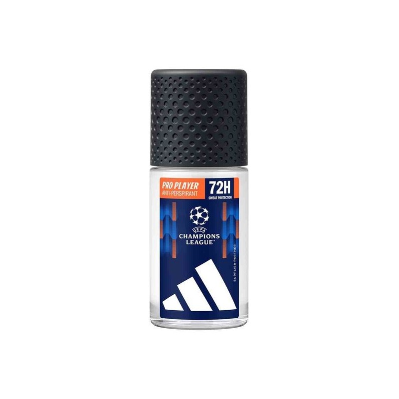 Adidas UEFA Champions League Pro Player antyperspirant roll-on to doskonałe rozwiązanie dla mężczyzn, którzy pragną skutecznej ochrony przed potem i nieprzyjemnym zapachem przez cały dzień. Inspirujący aromat nawiązuje do emocji towarzyszących rozgrywkom piłkarskiej Ligi Mistrzów, podkreślając ducha rywalizacji i męskości. Idealny dla aktywnych osób, które cenią komfort oraz świeżość niezależnie od wyzwań.