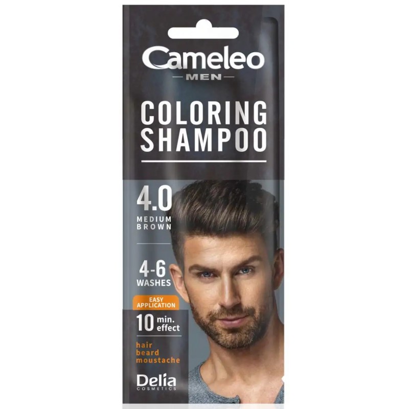 Delia Cameleo Men Coloring Shampoo Szamponetka koloryzująca dla mężczyzn - 5.0 Light Brown 15ml Dzięki temu produktowi każdy mężczyzna, niezależnie od wieku, może w prosty i wygodny sposób zadbać o swój wygląd, eksperymentując z kolorem włosów, brody czy wąsów. Szampony Cameleo MEN oferują subtelne tonowanie, które pozwala na delikatną zmianę koloru lub podbicie istniejącego odcienia.