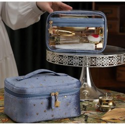 Wewnątrz znajduje się druga, mniejsza przezroczysta kosmetyczka na bardziej niezbędne kosmetyki.
