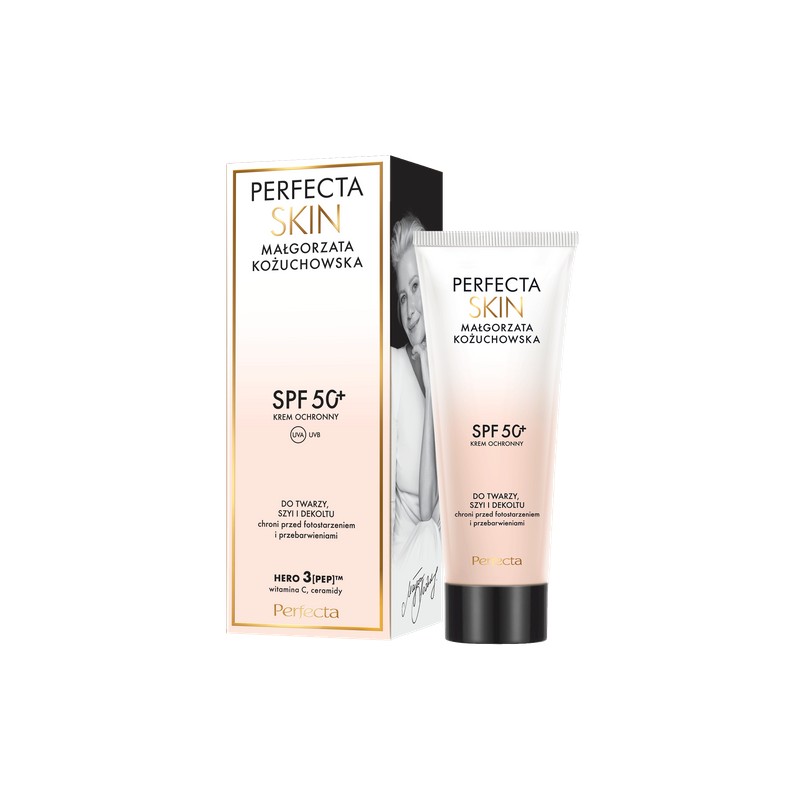 DAX Perfecta Skin Małgorzata Kożuchowska krem ochronny SPF 50+ do twarzy, szyi i dekoltu