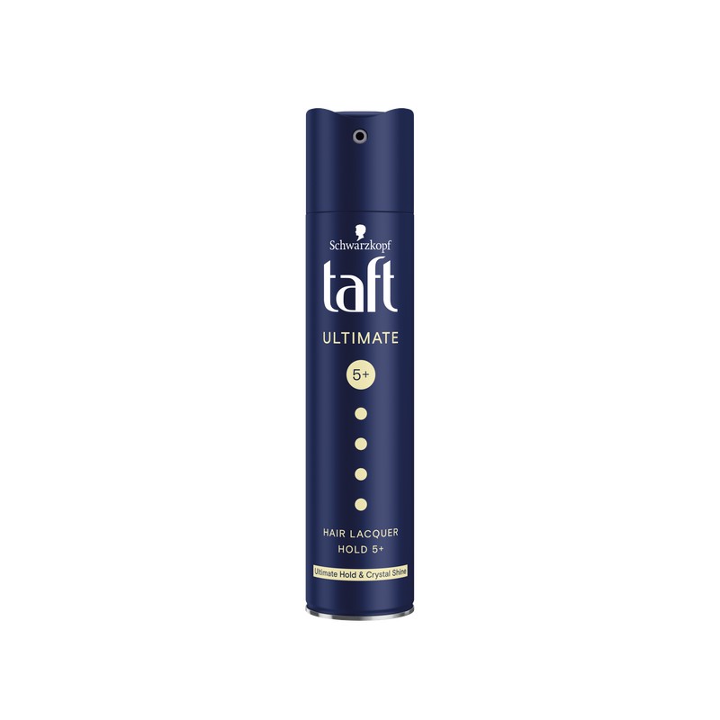 Dzięki mniejszym kropelkom lakier jest rozprowadzany równomiernie i przenika głębiej, będąc źródłem trzech oznak naturalnego piękna i sprężystości: włosy są naturalne w dotyku i nie kleją się, są sprężyste i swobodnie się poruszają. Dzięki nowej formule zapenia utrwalenie nawet do 48 godzin. Lakier do Włosów Taft Ultimately Strong szybko wysycha, ale nie przesusza włosów, łatwo się wyczesuje i pomaga chronić włosy przed szkodliwym działaniem promieni słonecznych. Dodaje fryzurze kryształowego blasku.