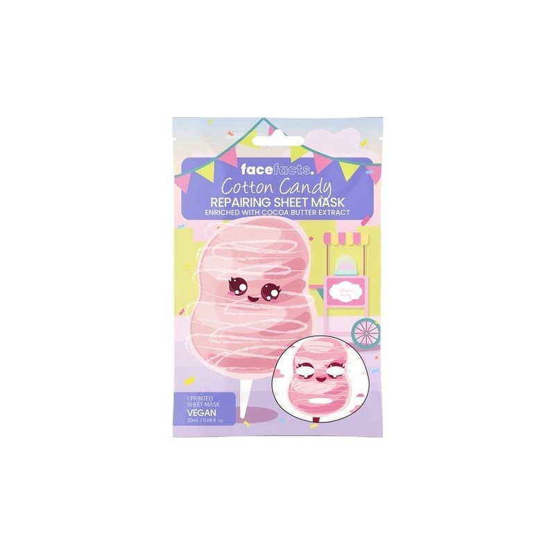 Zanurz się w świat słodkiej pielęgnacji z maską Cotton Candy! Wzbogacona nawilżającymi ekstraktami, maska na delikatnym materiale, ozdobiona kolorowymi nadrukami waty cukrowej, przywraca skórze miękkość i blask. To prawdziwa uczta dla Twojej cery!