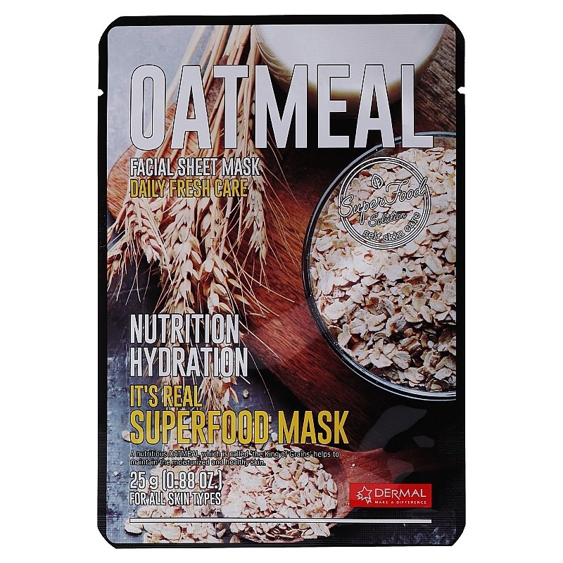 Zapewnij spokój swojej skórze! DERMAL It's Real Superfood Mask Koreańska maseczka w płachcie zawiera m.in.: