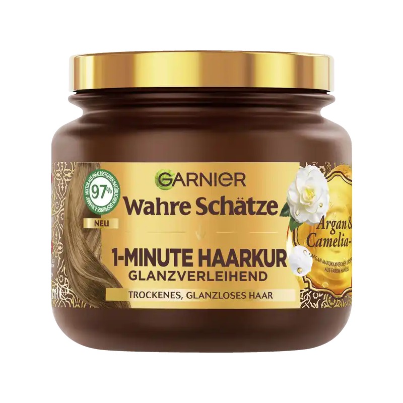 To 1-minutowa pielęgnacja włosów z wysokiej jakości olejem arganowym i odżywczym olejem z kamelii łączy w sobie dwa cenne oleje w jednym produkcie. Zapewniają one intensywną pielęgnację włosów już po krótkim czasie działania. Po zastosowaniu włosy są odżywione i lśnią pełnym blaskiem. Szczególnie suche i matowe włosy stają się miękkie i zdrowe. 1-minutowy zabieg dla włosów zawiera 97% naturalnych składników i wodę. Formuła nie zawiera również silikonów, aby nie obciążać włosów i zapewnić miękkie w dotyku włosy.
