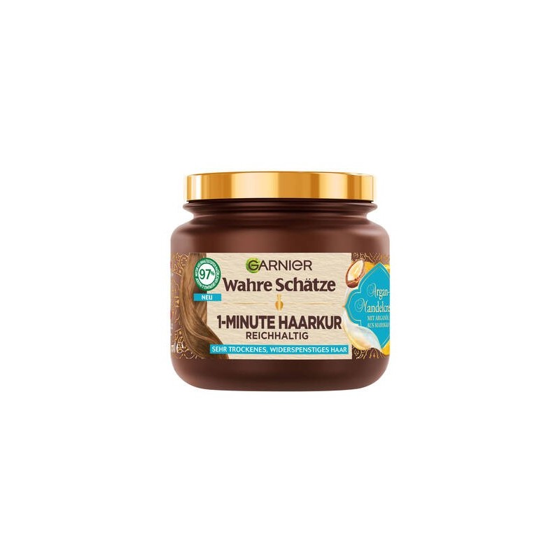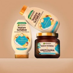 Garnier Wahre Schätze Argan Oil and Almond Cream 1 Minute Treatment jest idealny dla suchych, niesfornych włosów. W ciągu zaledwie jednej minuty ta maska do włosów zapewnia przyjemne, zadbane uczucie i dodatkową elastyczność. Bogata formuła szybko odżywia włosy, nie obciążając ich. Używany olej arganowy jest przedmiotem uczciwego handlu, co zapewnia etyczne pozyskiwanie. Ten zabieg pozostawia włosy miękkie, gładkie i naturalnie lśniące, podkreślając ich ogólne piękno.