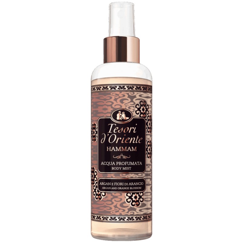 Odkryj zapachową podróż inspirowaną tradycyjnymi rytuałami hammam. Tesori d’Oriente Hammam to orientalna mgiełka do ciała, która łączy w sobie oczyszczające właściwości i zmysłowy aromat. Kompozycja oparta na olejku arganowym i kwiatach pomarańczy otula skórę ciepłą, relaksującą wonią, przywołując atmosferę bliskowschodnich łaźni.