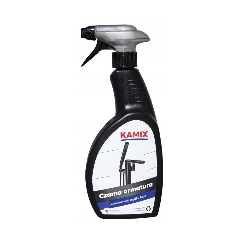 Płyn do czyszczenia czarnej armatury z łatwością usuwa osady z kamienia, mydła, tłuste ślady po palcach z armatury sanitarnej barwionej na czarno lub inny kolor, również z innych powierzchni jak ceramika, glazura, plastik, szkło. Działa łagodnie na wrażliwe na odbarwienie powierzchnie utrzymując je w doskonałym stanie. Specjalnie dobrany skład recepturalny spowalnia ponowne osadzanie się brudu. Nie pozostawia smug.