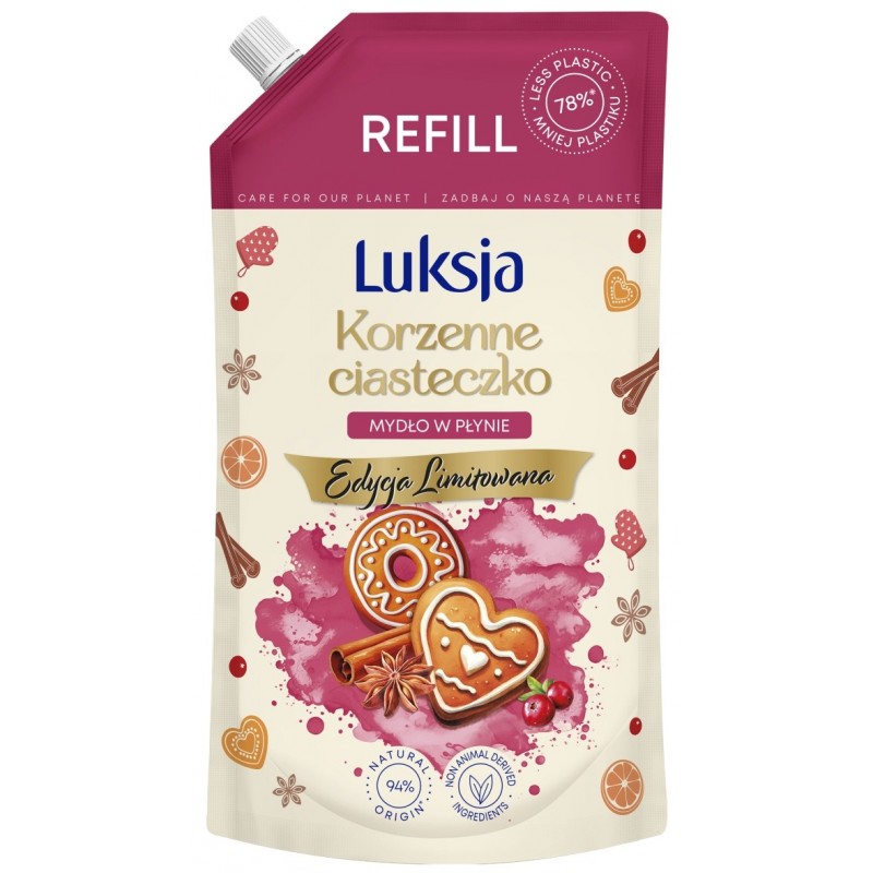 LUKSJA MYDŁO W PŁYNIE ZAPAS 900ML EDYCJA LIMITOWANA KORZENNE CIASTECZKO
