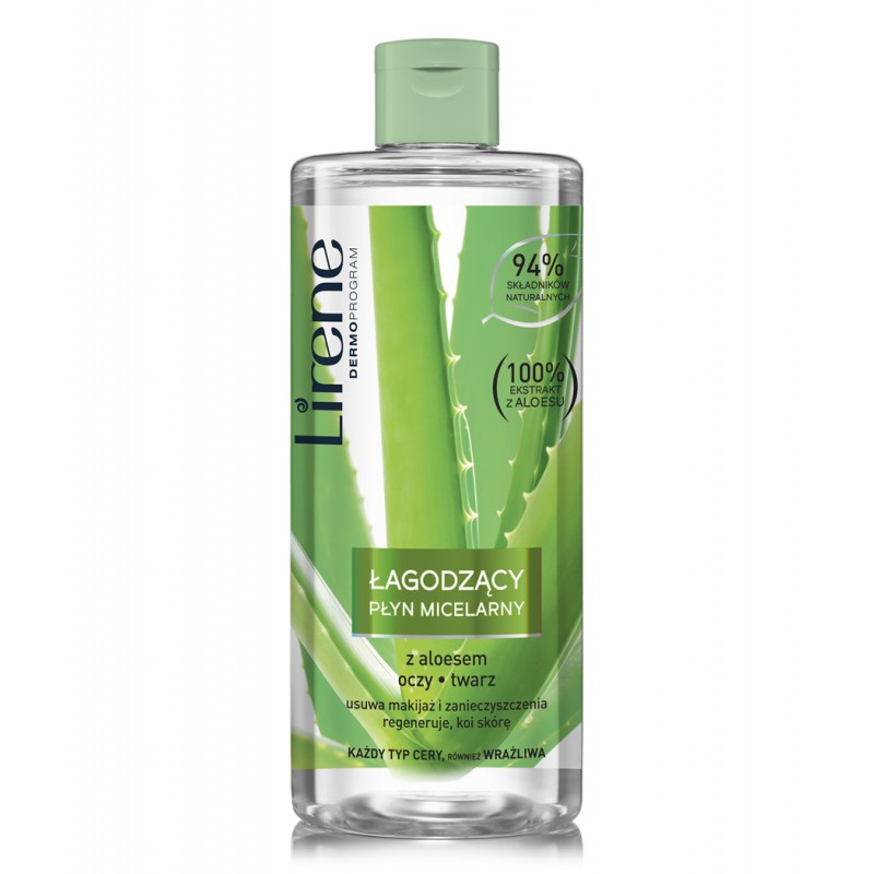 Zespół ekspertek Laboratorium Naukowego Lirene, zainspirowany ideą kompleksowego oczyszczania i pielęgnacji skóry twarzy oraz oczu, stworzył unikalną formułę micelarną ze 100% naturalnym aloesem, opartą na synergii działania składników oczyszczających oraz łagodzących, która: