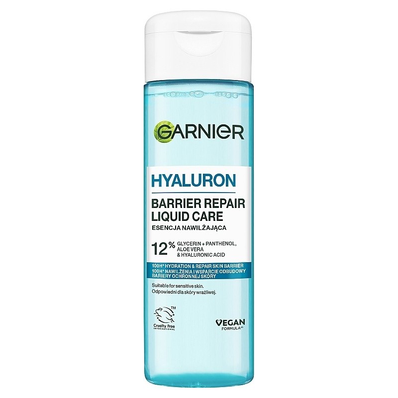 Esencja nawilżająca Hyaluron Barrier Repair łączy w sobie GLICERYNĘ + PANTENOL i wzbogacona jest ALOESEM i KWASEM HIALURONOWYM. Zapewnia do 100 godzin* nawilżenia i wspomaga odbudowę bariery ochronnej skóry. GLICERYNA - dla utrzymania nawilżenia. PANTENOL wspomaga naprawę bariery ochronnej skóry, aby zapobiec utracie wody.KWAS HIALURONOWY pozyskiwany biotechnologicznie potężny składnik nawilżający, który jest zdolny związać 1000x więcej wody niż sam waży. EKSTRAKT Z ALOESU to składnik, który intensywnie nawilża skórę. Udowodniona skuteczność: - Zapewnia do 100 godzin* nawilżenia - Wzmacnia barierę ochronną skóry w 1 godzinę** - Skóra jest o 75% bardziej nawilżona*