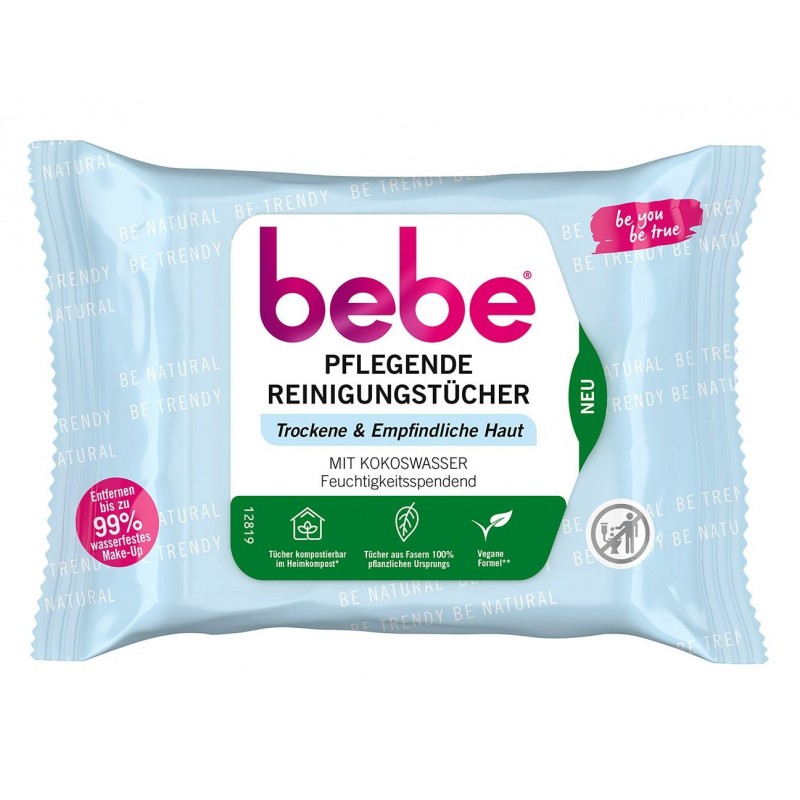Chusteczki wykonane są w 100% z włókien pochodzenia roślinnego, zawierają naturalną wodę kokosową i nie zawierają alkoholu, dzięki czemu idealnie nadają się do skóry wrażliwej i suchej oraz są delikatne dla oczu.
