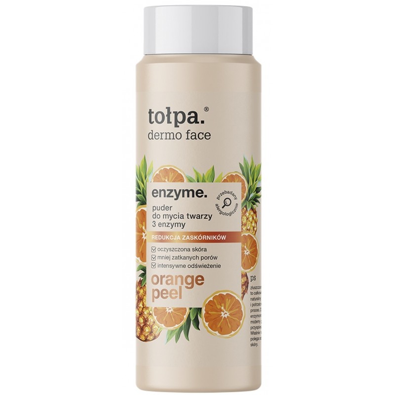 Nasz dermokosmetyk zmienia mycie twarzy w orzeźwiający rytuał. Oczyszcza i wspomaga procesy złuszczania, dzięki czemu wspiera redukcję zaskórników i zmniejsza widoczność porów. Pozostawia skórę czystą, gładką i bez uczucia ściągnięcia. małe wielkie składniki 3 enzymy: - bromelaina, papaina, keratolina - redukują zaskórniki i delikatnie złuszczają skórka pomarańczy - naturalny olejek eteryczny, dający intensywne odświeżenie mączka owsiana i skrobia ryżowa - jednocześnie tworzą pudrową formułę, pochłaniają sebum, łagodzą podrażnienia i wygładzają torf tołpa. - multiroślinny antyoksydant, naturalnie chroni i wzmacnia skórę wrażliwą Odpowiedni od 12 roku życia. przebadany klinicznie dermatologicznie i alergologicznie wiemy, że enzymy odgrywają w kosmetykach piękną rolę. Złuszczając naskórek, dają pole do działania innym składnikom. Są totalnymi sprzymierzeńcami odnowy, gładkości i naturalnego blasku. lubimy: torf tołpa., roślinne składniki aktywne, naturalny kolor słuchamy: mówicie nam, że nie lubicie parabenów, SLS-u, alkoholu etylowego. My o tym pamiętamy. ps złuszczanie to całkowicie naturalny i potrzebny proces. Dzięki enzymom możemy go przyspieszyć. Właśnie na tym polega odnowa skóry.