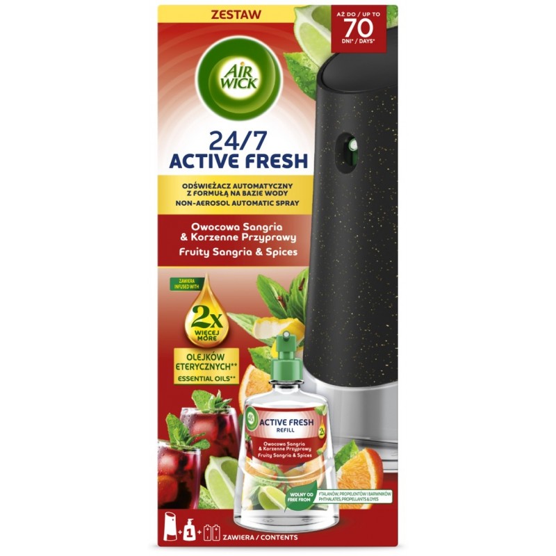 Air Wick Active Fresh Freesia Bloom & Eucalyptus, 228 ml, Odświeżacze powietrza Zapachy do domu, Automatyczny odświeżacz powietrza Air Wick Active Fresh Freesia Bloom & Eucalyptus uwalnia zapach stopniowo, nieustannie napełniając pomieszczenia Twojego domu przyjemnym aromatem. Jednocześnie neutralizuje niepożądane nieprzyjemne zapachy. Właściwości: kwiatowy zapach zwiewny czysty zapach wiosenny zapach Skład: na bazie olejków eterycznych Sposób użycia: Przechowuj poza zasięgiem dzieci i zwierząt domowych. Jeśli substancja wypełniająca produkt zetknie się ze skórą, natychmiast zmyj ją dużą ilością wody i mydła. W przypadku przedostania się do oczu, przepłucz je wodą przez kilka minut. Postępuj zgodnie z załączoną instrukcją.