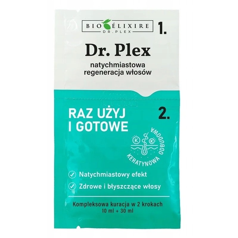 Twoje włosy są szorstkie, matowe i pozbawione życia? To znak, że potrzebują natychmiastowej regeneracji! Z Saszetkami Dr. Plex Bioelixire to żaden problem – innowacyjna, dwufazowa kuracja została stworzona z myślą o szybkiej, a jednocześnie skutecznej odbudowie włosów. Już jedno użycie wystarczy, aby odzyskały zdrowy blask, sprężystość i gładkość.