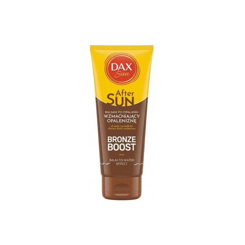Balsam po opalaniu Dax Sun After Sun Bronze Boost intensywnie pielęgnuje skórę po ekspozycji słonecznej, jednocześnie utrwalając i wzmacniając naturalną opaleniznę. Formuła wzbogacona o aktywny kompleks pro BRONZE, olej buriti i karmel nadaje skórze satynową gładkość, poprawia jej strukturę i wzmacnia złocisty odcień opalenizny. Kwas hialuronowy i inozytol zapewniają długotrwałe nawilżenie, wspierając równomierny i świeży wygląd skóry po słońcu. Lekkie, szybkoschnące wykończenie balsamu typu balm-to-water umożliwia wygodną codzienną pielęgnację, pozostawiając skórę miękką, elastyczną i przyjemną w dotyku.