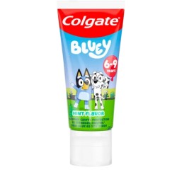 Zadbaj o zdrowy uśmiech swoich dzieci z pastą do zębów Colgate Bluey dla dzieci w wieku 6-9 lat. Zawiera ona zalecaną przez dentystów dawkę fluoru i zapewnia maksymalną ochronę zębów dzieci, aby ich szkliwo było 4-krotnie mocniejsze*. Pasta do zębów dla dzieci Colgate Bluey zawiera neutralizator kwasów cukrowych, które znajdują się w płytce nazębnej i mogą uszkadzać zęby oraz prowadzić do próchnicy. O delikatnym, miętowym smaku - idealnym dla dzieci. Dzięki technologii zmiany koloru (z białego na niebieski pod wpływem szczotkowania), Twoje dzieci mogą czerpać jeszcze większą frajdę z mycia zębów przez zalecane 2 minuty.