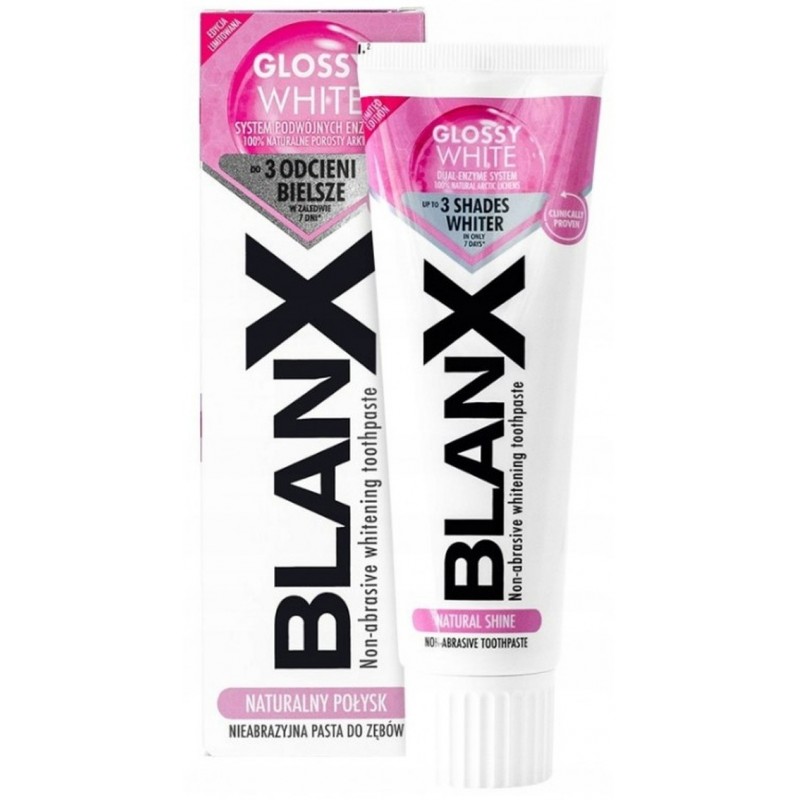 BlanX Glossy White reprezentuje ekskluzywną formułę BlanX, stworzoną w celu uzyskania naturalnie bielszych zębów oraz osiągnięcia ekstremalnej świeżości. Unikalne połączenie naturalnych porostów arktycznych i innowacyjnego systemu podwójnych enzymów sprawia, że produkt nie tylko zwalcza przebarwienia, ale także działa intensywnie antybakteryjnie, zapewniając trwałą białość. Dzięki BlanX Glossy White możesz cieszyć się nie tylko estetycznym efektem, ale także długotrwałym uczuciem czystości i świeżości w jamie ustnej.