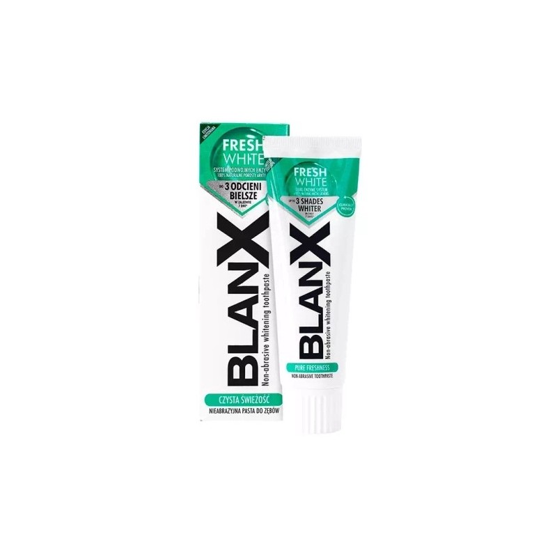 BlanX Fresh White to fantastyczna orzeźwiająca pasta do zębów do codziennej pielęgnacji zębów i dziąseł. Bogata receptura została stworzona dzięki doskonałej kompozycji porostów arktycznych i enzymów, które wykazują działanie antybakteryjne i wybielające. Zapewnij sobie piękny uśmiech każdego dnia, dzięki produktom od marki BlanX!