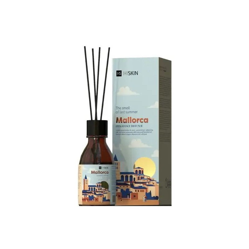 HiSkin Bon Voyage Dyfuzor zapachowy - Mallorca Zaproszenie do słonecznego świata Majorki, gdzie soczyste kolory natury łączą się z intensywnymi aromatami owoców i kwiatów. Kompozycja zapachowa łączy świeże, energetyzujące nuty cytryny, bergamotki i grejpfruta z delikatną, zmysłową wonią jaśminu i kojącym aromatem zielonej herbaty. Ten niezwykle harmonijny zapach przywołuje obrazy bujnych zboczy wulkanicznej wyspy skąpanych w słońcu i morzu.