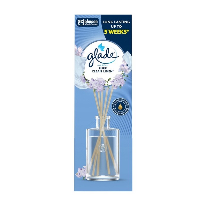 Odetchnij świeżością po długim dniu z nowym dyfuzorem patyczkowym Glade Reed Diffuser o zapachu Pure Clean Linen.