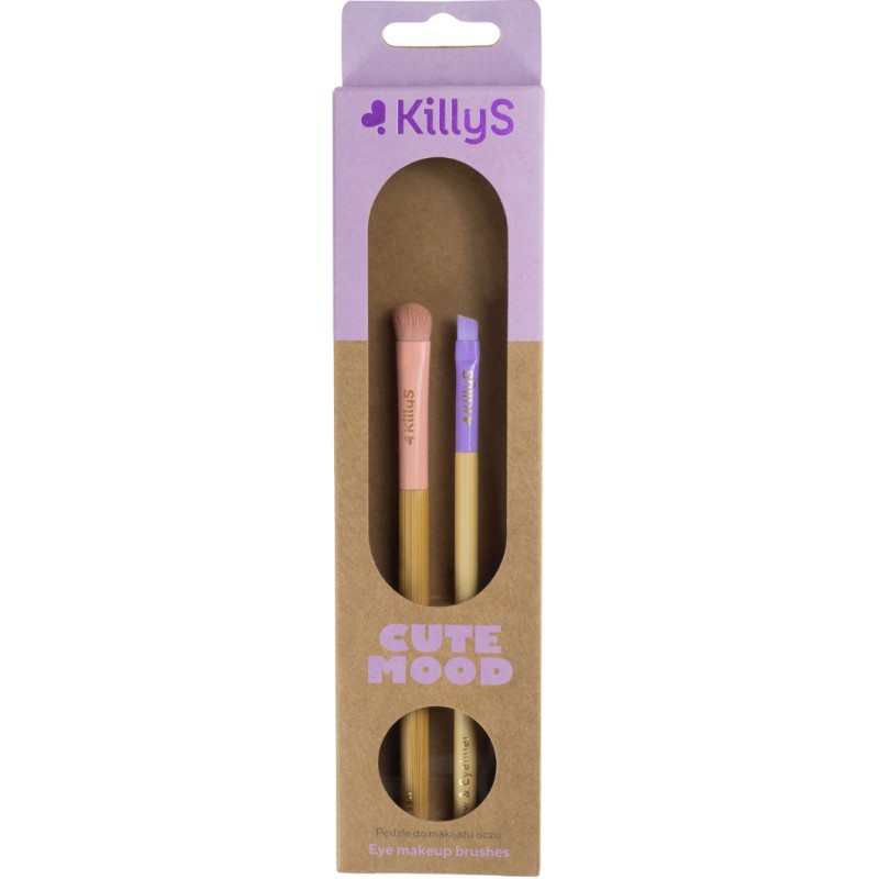 Zestaw pędzli do makijażu oczu KillyS z kolekcji Cute Mood składający się z pędzla do brwi i kresek oraz pędzla do blendowania. Wysokiej jakości, syntetyczne włosie świetnie współpracuje zarówno z suchymi, jak i kremowymi formułami.