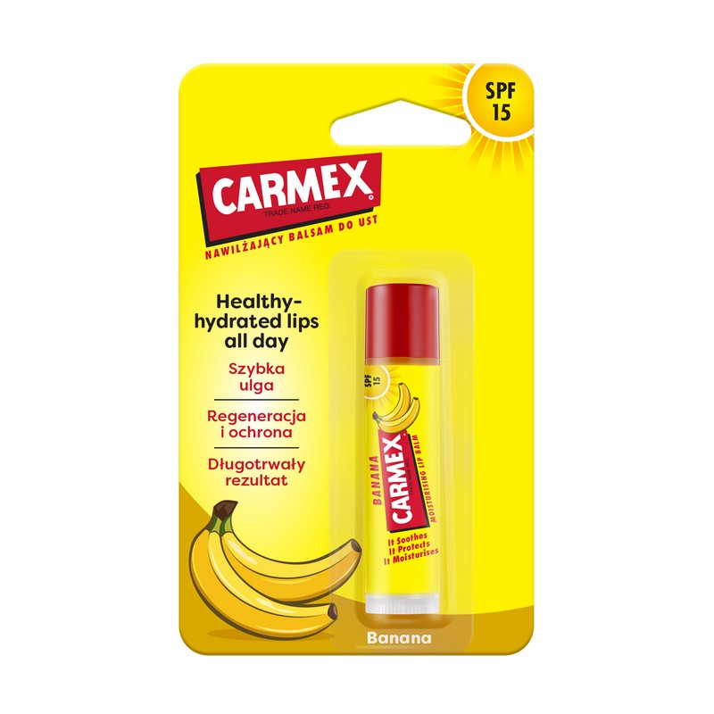 To naprawdę must have! Bananowy sztyft pełen składników pielęgnujących usta z kultowym uczuciem mrowienia CARMEX. Ten mały klejnot zapewnia zastrzyk przyjemnego nawilżenia, wspomaga regenerację, pielęgnację i odbudowę ust oraz pomaga zachować ich zdrowy wygląd.