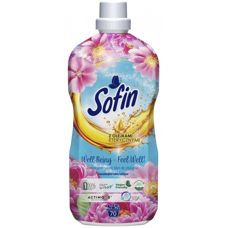 Sofin Well Being to skoncentrowany płyn do płukania tkanin, który wystarcza aż na 70 prań.