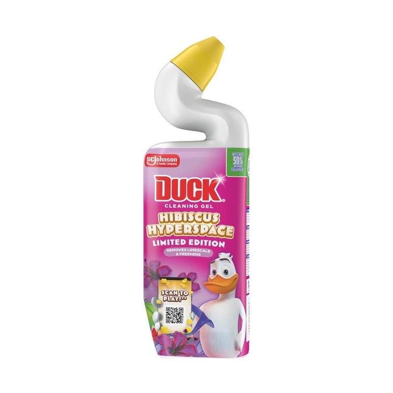 Przenieś swoją łazienkę w kosmiczny wymiar świeżości. Duck® Cleaning Gel Hibiscus Hyperspace skutecznie usuwa kamień i zabrudzenia, pozostawiając egzotyczny zapach hibiskusa. Zapewnia higieniczną czystość, intensywną świeżość i łatwą aplikację dzięki ergonomicznej butelce.