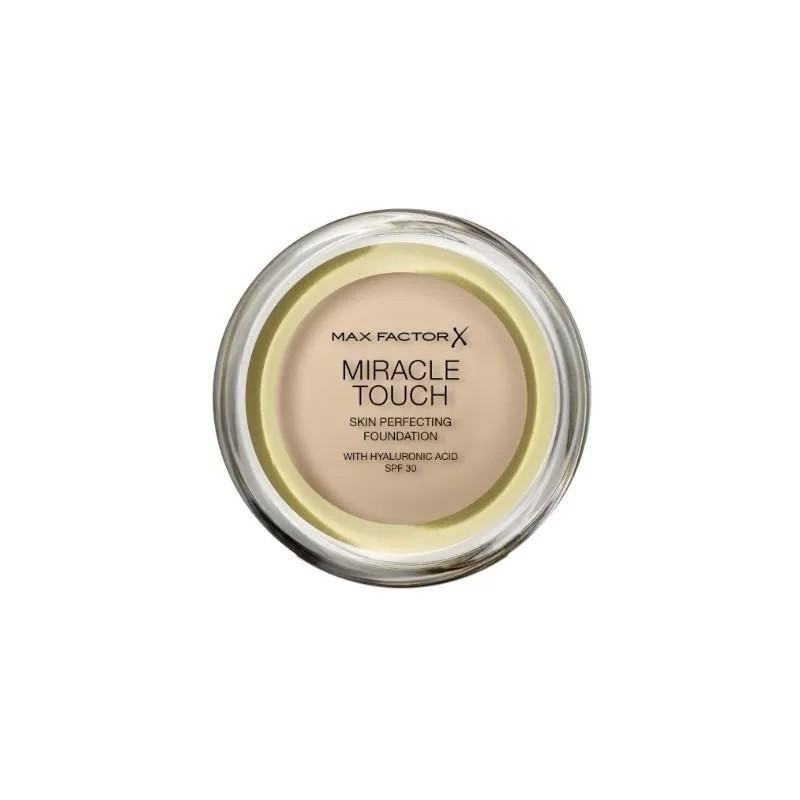 MAX FACTOR MIRACLE TOUCH SPF30 Podkład do twarzy w kremie - 043 GOLDEN IVORY Podkład który zatuszuje niedoskonałości twojej cery. Po jego użyciu skóra nie będzie się świecić, a sam podkład będzie utrzymywał się przez wiele godzin. Miracle Touch to podkład, którego treściwa, kremowa konsystencja zmienia się w kontakcie ze skórą w płynny, puszysty fluid.