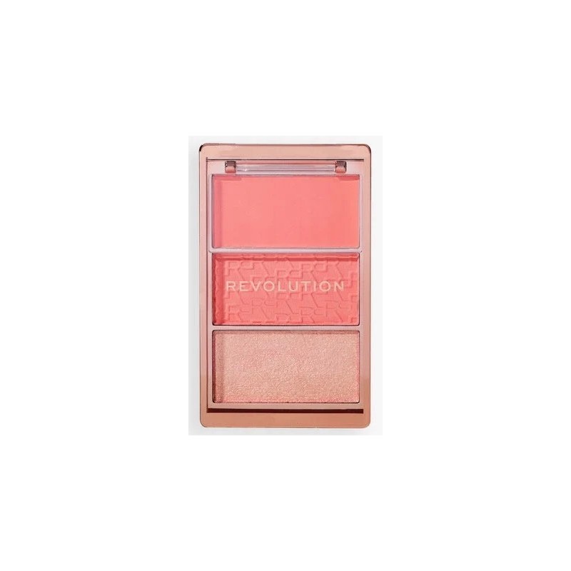 Revolution Blush Icon Palette – idealna paleta róży, zawierająca trzy wykończenia: kremowe, matowe oraz z rozświetlającymi drobinkami. Zapewnia efekt świeżego, promiennego koloru przez cały dzień.