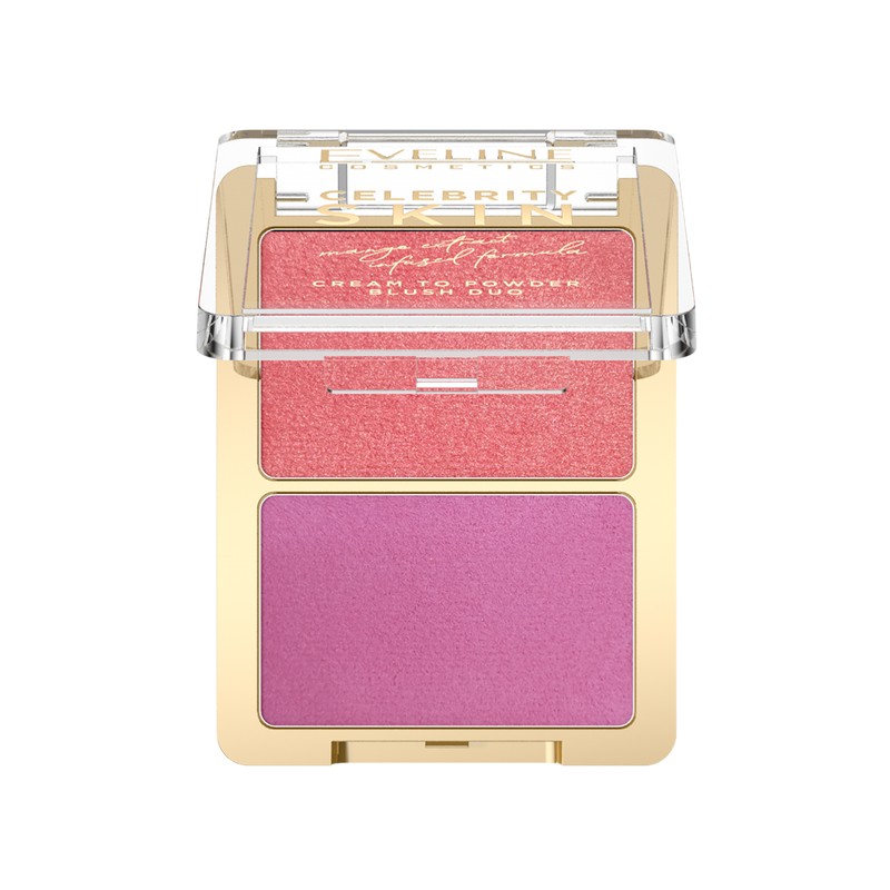 Duet Kremowych Róży do Policzków Celebrity Skin to wielofunkcyjny kosmetyk do makijażu twarzy, który łączy matowy i rozświetlający róż w innowacyjnej formule cream-to-powder. Produkt wtapia się w skórę, nadając policzkom naturalny kolor, subtelne rozświetlenie i efekt zdrowej, jędrnej cery. Dzięki hybrydowej konsystencji makijaż wygląda świeżo i lekko, jak naturalny rumieniec, a nie dodatkowa warstwa kosmetyku. Kremowo-pudrowa formuła zapewnia łatwą aplikację oraz idealne blendowanie bez smug i plam. Róż płynnie stapia się ze skórą, tworząc miękkie przejścia kolorystyczne i optycznie wygładzając strukturę cery. Efekt blur redukuje widoczność drobnych nierówności, sprawiając, że policzki wyglądają gładko i promiennie przez cały dzień. Duet pozwala dopasować wykończenie makijażu do okazji i preferencji. Matowy odcień subtelnie modeluje twarz i podkreśla naturalny koloryt skóry, natomiast rozświetlający dodaje wymiaru oraz efektu glow. Stosowane osobno lub razem umożliwiają uzyskanie wykończenia matowego, satynowego lub świetlistego - od delikatnego dziennego makijażu po bardziej wyrazisty look. Produkt dostępny jest w wariantach kolorystycznych Soft Harmony oraz Sunset Flush, dopasowanych do różnych typów karnacji. Formuła została wzbogacona ekstraktem z mango, który wspiera komfort skóry i pomaga utrzymać jej świeży, nawilżony wygląd. Róż doskonale współpracuje zarówno z produktami kremowymi, jak i pudrowymi - można aplikować go na podkład, krem BB lub przypudrowaną cerę. Lekka, wegańska formuła zapewnia naturalny efekt second skin oraz długotrwałe utrzymanie makijażu bez obciążenia. Duet Kremowych Róży do Policzków Celebrity Skin to idealne rozwiązanie dla osób poszukujących kosmetyku, który łączy makijaż i pielęgnacyjny komfort, zapewniając świeży, promienny wygląd oraz możliwość stopniowania intensywności koloru każdego dnia.