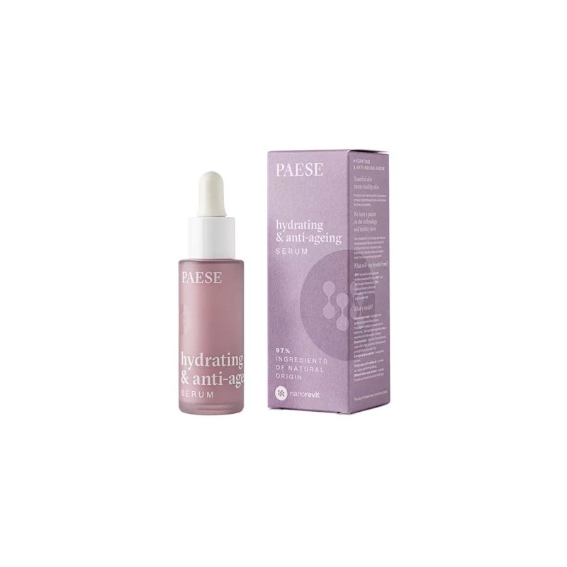 Serum nawilżająco-przeciwstarzeniowe może być używane do każdego rodzaju cery, samodzielnie lub pod makijaż. Kosmetyk zawiera 97% składników pochodzenia naturalnego. Daj swojej skórze to, co najlepsze i wybierz pielęgnację z marką Paese!