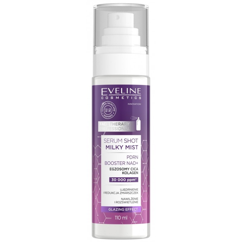 Eveline Serum Shot Milky Mist - lekka, wielozadaniowa mgiełka-serum, która błyskawicznie poprawia poziom nawilżenia i przywraca skórze zdrowy, promienny wygląd. Delikatna, mleczna formuła otula cerę niczym nawilżająca esencja, wygładza ją i przywraca uczucie komfortu już od pierwszej aplikacji. Skóra staje się bardziej miękka, elastyczna i wyraźnie odprężona, dzięki czemu wygląda świeżo i wypoczęcie nawet wtedy, gdy jest zmęczona, sucha lub pozbawiona blasku.