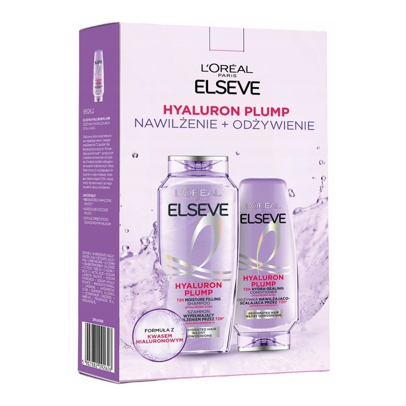Elseve Szampon Hyaluron Plump Hydration jest wzbogacony kwasem hialuronowym i pomaga utrzymać nawilżenie w łuskach włosów nawet przez 72 godziny, dzięki czemu włosy są bardziej błyszczące, 10 razy bardziej nawilżone i odżywione. Butelka szamponu jest wykonana w 100% z materiałów pochodzących z recyklingu i nadaje się do ponownego przetworzenia.