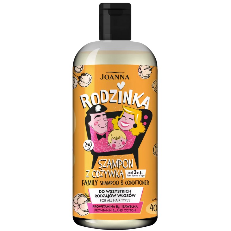 Szukasz jednego kosmetyku, który sprawdzi się w codziennej pielęgnacji wszystkich domowników? RODZINKA – szampon z odżywką 2w1 dla całej rodziny to wygodne rozwiązanie, które jednocześnie oczyszcza włosy i zapewnia im podstawową pielęgnację. Dzięki formule z prowitaminą B5, proteinami i składnikami odżywczymi włosy stają się miękkie, gładkie i łatwe do rozczesania.