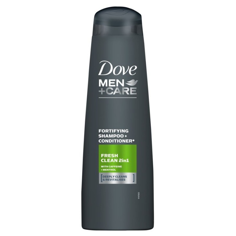 Dove Men+Care Fresh Clean szampon+odżywka 2w1 zapewnia głębokie, odświeżające oczyszczenie. Wzbogacony w kofeinę i mentol, ten szampon dla mężczyzn 2w1 delikatnie myje i pozostawia uczucie świeżości i orzeźwienia. Dove Men+Care Fresh Clean szampon+odżywka 2w1 został stworzony specjalnie dla mężczyzn, aby zapewnić im głębokie oczyszczenie i odżywienie, które w widoczny sposób wzmacnia włosy i czyni je bardziej odpornymi.