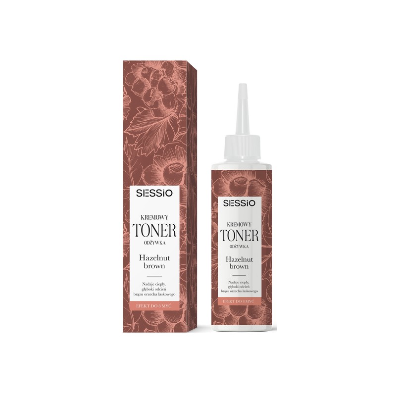Kremowy toner – odżywka Hazelnut Brown. Do użycia na umyte, wilgotne włosy. Z pielęgnującym dodatkiem nabłyszczających olejów i zmiękczających kondycjonerów. Tonuje kolor, nadając lekki odcień ciepłego, orzechowego brązu na włosach blond. Na włosach ciemniejszych ożywia i ociepla kolor. Formuła bez amoniaku i wody utlenionej daje nieintensywny, łagodny efekt. Rezultat końcowy zależy od kondycji włosa i koloru wyjściowego – włosy ciemne, siwe, o zamkniętej łusce są mniej podatne na pigmenty, włosy rozjaśniane, farbowane, zniszczone bardziej.