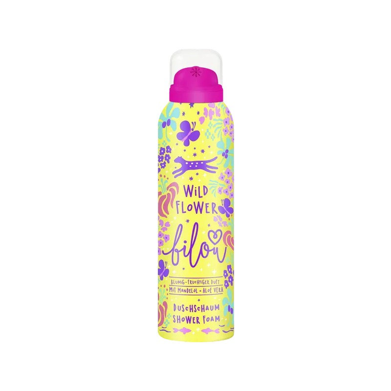 bilou Wild Flower ma świeży, kwiatowy zapach frezji, jaśminu i słodkiej wanilii – energia dzikich kwiatów! Wnieś więcej zabawy do swojego codziennego życia pod prysznicem! Kremowa pianka pod prysznic delikatnie oczyszcza i odżywia skórę dzięki wysokiej jakości aloesowi, olejowi migdałowemu i olejowi awokado. Dermatologicznie potwierdzona zgodność skóry. Bez mikroplastików, silikonów, olejów mineralnych i parabenów.