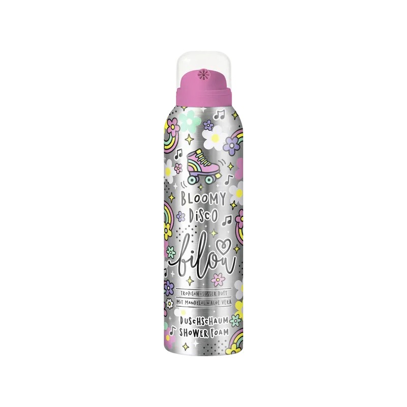 bilou Bloomy Disco – zapach arbuza, kokosowego i jaśminowego mleka emanuje tropikalnym, słodkim szczęściem... Podążaj za atmosferą! Wnieś więcej zabawy do swojego codziennego życia pod prysznicem! Kremowa pianka pod prysznic delikatnie oczyszcza i odżywia skórę dzięki wysokiej jakości aloesowi, olejowi migdałowemu i olejowi awokado. Dermatologicznie potwierdzona zgodność skóry.