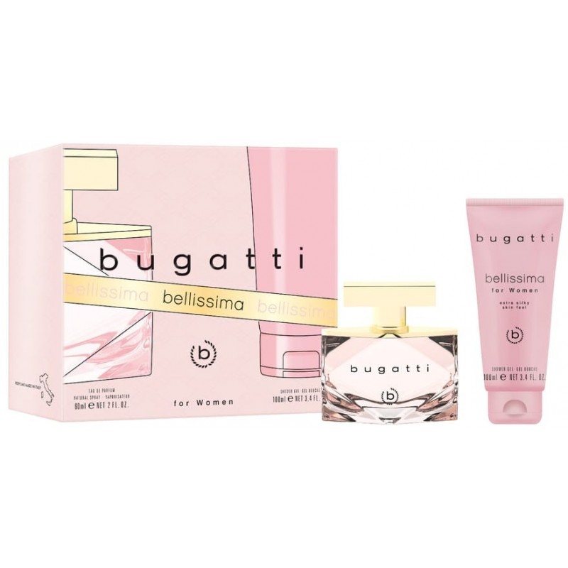 Bugatti Bellissima zestaw prezentowy zawiera wodę perfumowaną 60 ml i żel pod prysznic 100 ml.